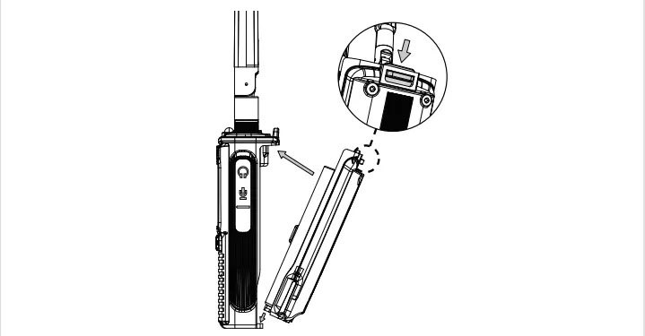 Push the battery tightly onto the body and into the battery compartment, and hear a "ka" sound. The battery clip will automatically tighten.